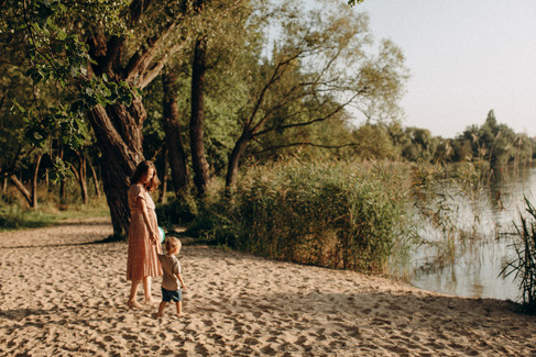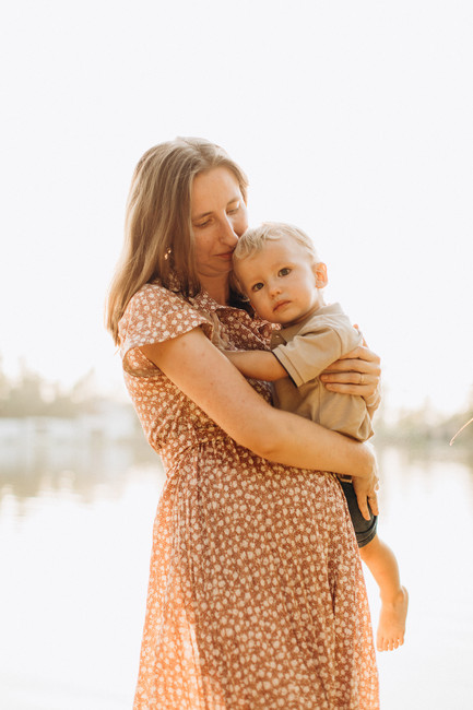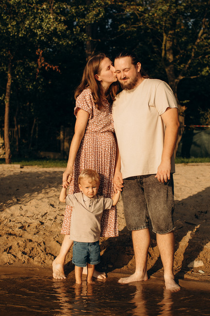 To, co najbardziej uderza, to nie tylko obraz sam w sobie, ale atmosfera, którą te zdjęcia oddają. Patrząc na nie, niemal czuje się delikatny zapach letniego powietrza, wilgotność wody, która dotyka stóp, oraz ciepło promieni słonecznych odbijających się od jeziora. Tego typu ujęcia są kwintesencją fotografii rodzinnej — pełnej bliskości i miłości, uchwyconej w najbardziej autentycznym momencie, kiedy aparat przestaje być zauważalny.